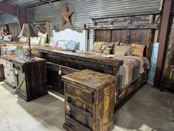 Checkout this one of a kind King bed made from 150 year old pine wood.